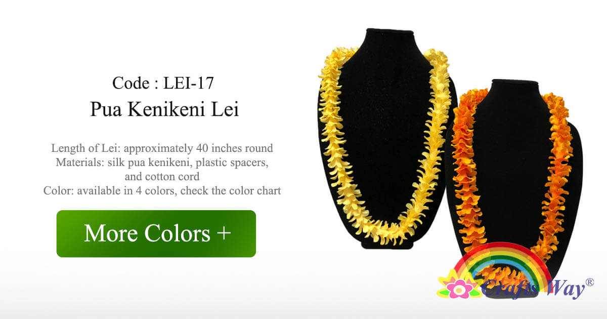 Silk pua kenikeni plastic. A common forest tree in the Cook Islands it can reach over 50 feet tall under ideal conditions. Pua Kenikeni Lei is available in length 40 inches round and in various colors.
